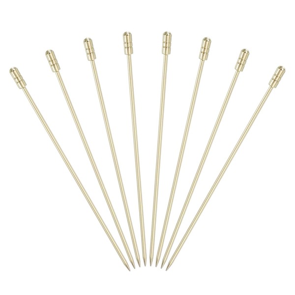 sourcing map 8 Pcs Stainless Steel Cocktail Picks, 4.33" Martini Picks Fruit Sticks Metal Skewers Reusable for Drinks Olives Appetizers Fruit Decorative, Gold (Cylinder)