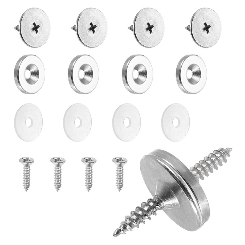 sourcing map 8 Set Cabinet Door Catch, Cabinet Latch Magnetic Lock Stainless Steel with Screw for Cupboard Kitchen Closet Wardrobe Door, Silver