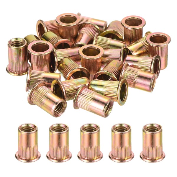 sourcing map 80Pcs Rivet Nuts Flat Head, M8-1.25 Carbon Steel Threaded Insert Nuts Knurled Body