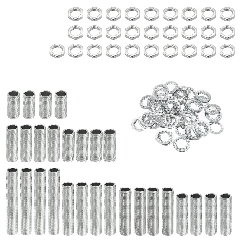 • These hex nuts are common hardware for screwing into the threaded lamp tube. And the standard washer is used to distribute the load on the surface of the attached fittings. Widely used to attach threaded pipes to assemble, replace, repair chandeliers, ceiling lights or other DIY lamp projects.
