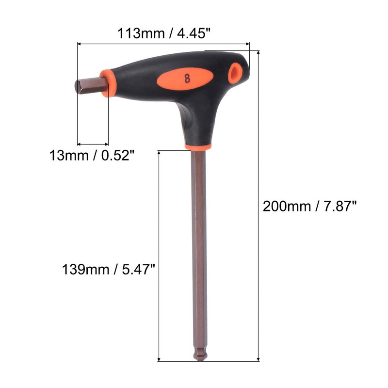 sourcing map 8mm Ball End Hex Key T-Handle Wrench Spanner, Metric S2 Steel