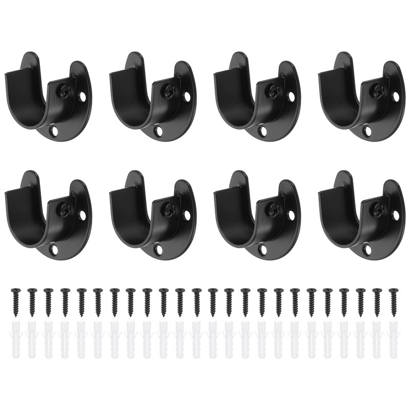 - Colour: Black; Material: 201 Stainless Steel; Surface Treatment: Electroplating; Total Height: 22mm / 0.87"; Flange Base Diameter: 45mm /1.77"; Mounting Pipe Diameter: 25mm / 0.98"; Package Contents: 8Pcs x Closet Rod End Supports (24Pcs x Self-tapping Screws, 24Pcs x Expansion Tube)