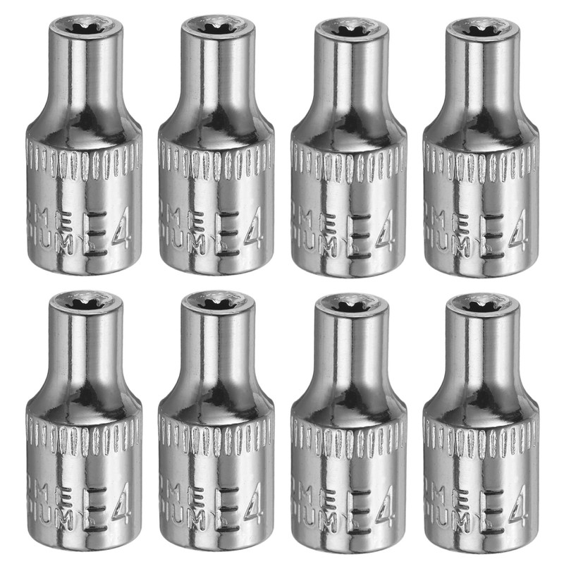 - Size - Drive: 1/4"; Socket Specifications: E4; Total Length: 25mm / 1"; Package includes: 8 x External Torx Socket. The specifications of the socket are visible and engraved on the surface. You can quickly switch between different socket sizes to improve work efficiency.