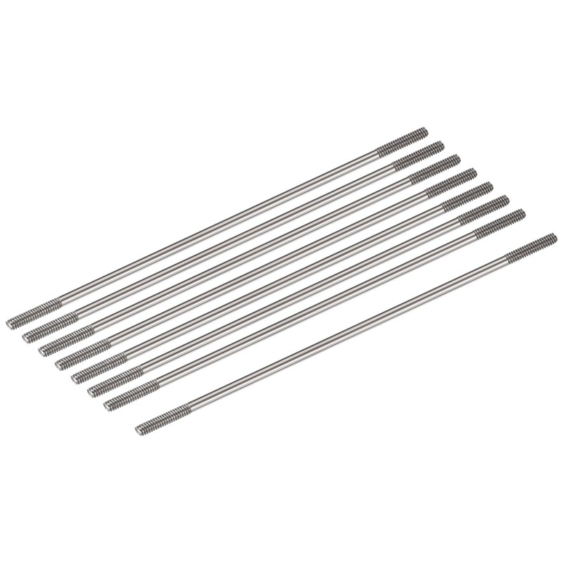 - Pushrod Connector,Color: Silver Tone;Material: 304 Stainless Steel;Total Length:75mm/2.95 inch;Diameter: 1.8mm/0.07 inch;Thread: M2;Length of Thread:10mm/0.39 inch;In the package of:8pcs x Double End Thread Stud Push Rod;