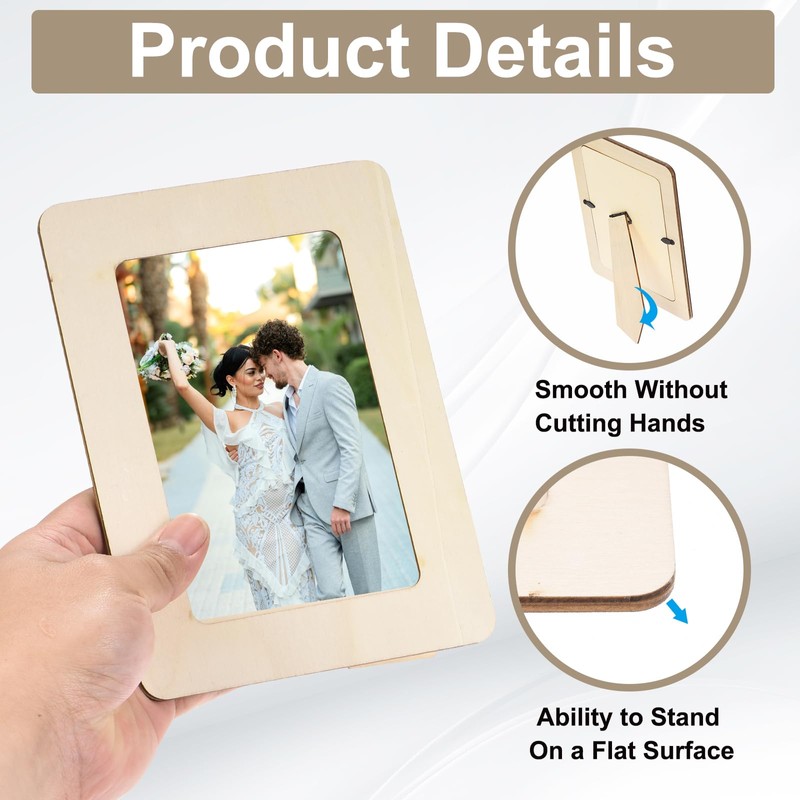 - The Small Wood Frames require self-assembly and decoration, so they can be customized according to personal preferences and needs to create unique photo displays, adding personalization and fun to the decoration. A unfinished picture frames can stand up and make better use of space, making it a great home decoration. The photos in the frame can become a record of beautiful moments, carrying people's emotions and memories, and have commemorative significance.