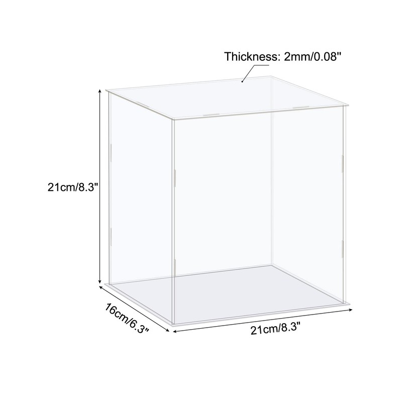 - External Size: (LxWxH): 21x16x21cm/8.3x6.3x8.3 inch; Internal Size(LxWxH): 20x15x20cm/8x6x8 inch; Board Thickness: 2mm/0.08 inch.The internal dimensions of the display box = the length, width and height of the display item + 2~5cm. Please confirm the dimensions before purchasing.