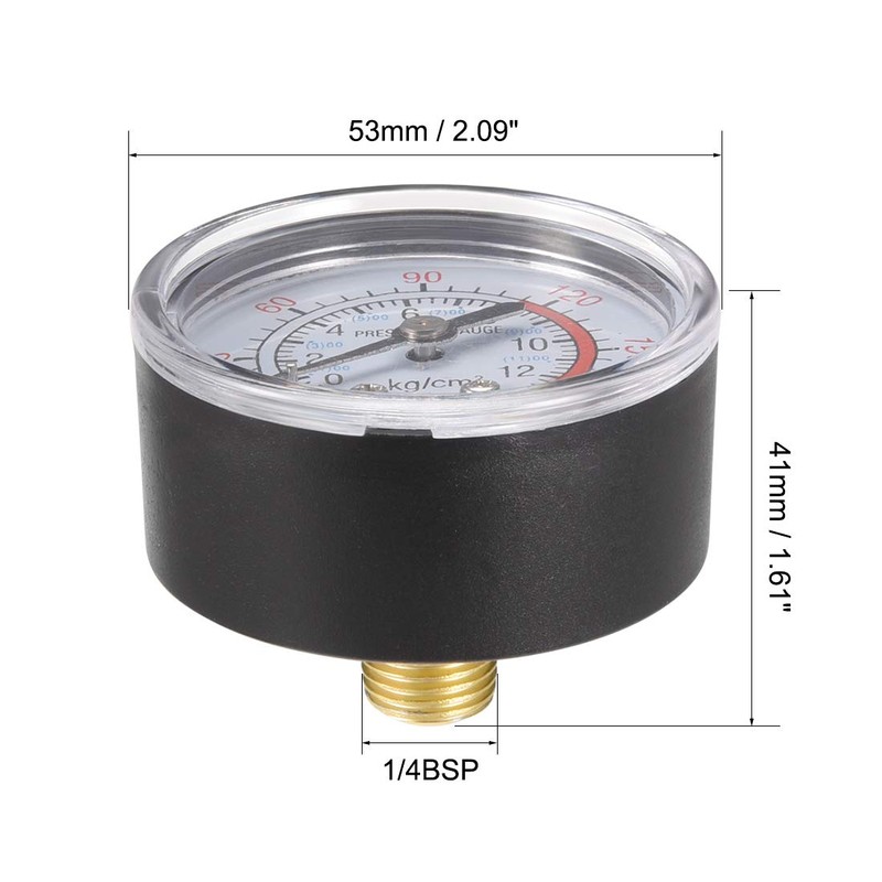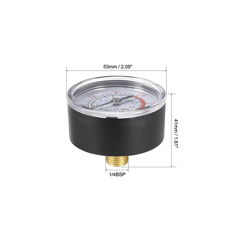 sourcing map Air Compressor Parts Pressure Gauge 1/4BSP 12.5mm Male Thread Back Mount 0-180 PSI