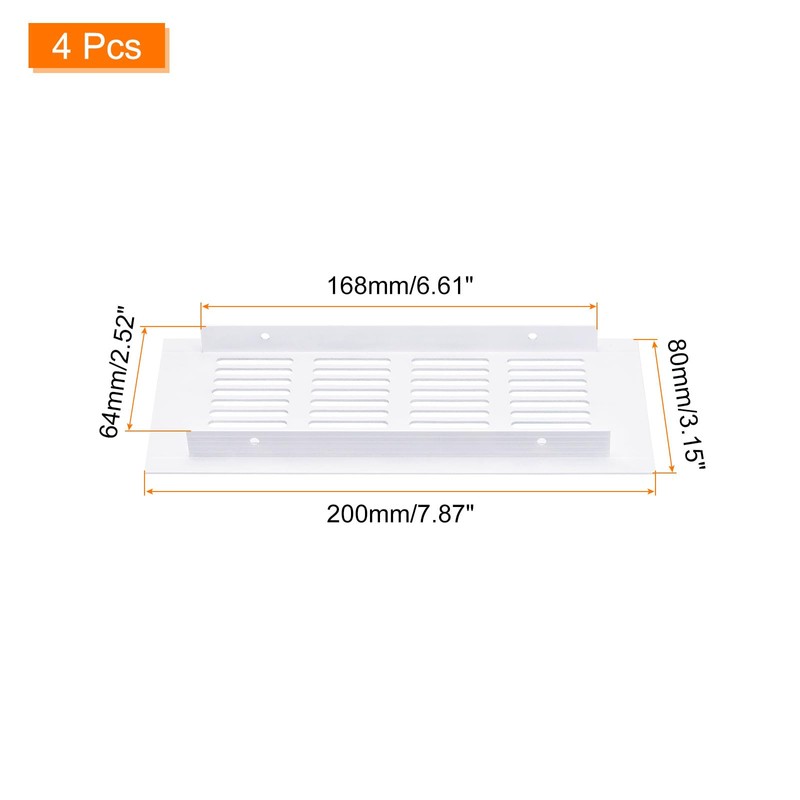 sourcing map Air Vents Cover, 4Pcs 200 x 80mm - Aluminum Alloy Mesh Air Return Vent Cover, Rectangle Louvered Ventilation Grille for Shoe Cabinet Wardrobe (White)