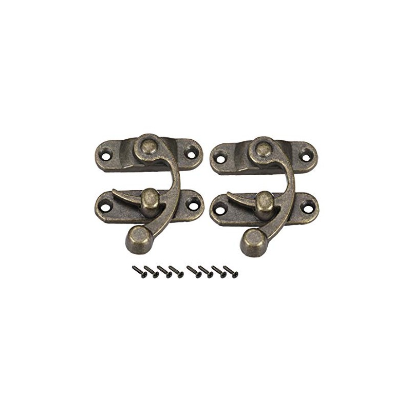sourcing map Antique Vintage Lock Clasp Right Latch Hook Hasp 42mm x 36mm Swing Arm Latch Plated Bronze, 2 pcs w Screws
