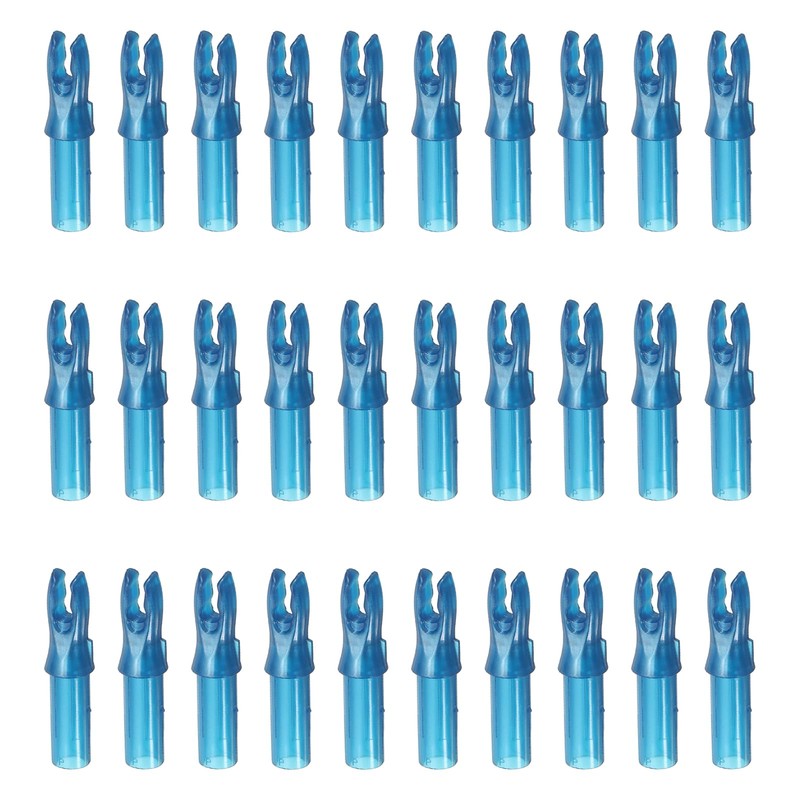 - The Archery Arrow Nocks, our provides here, are in size of 31x7 mm/1.2x0.244 Inch(LxD); Material: Plastic; Color: Blue; Packing List: 30 Pack x Archery Arrow Nocks