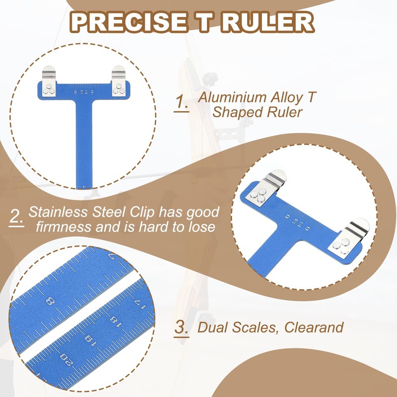 - The T-square can be fixed on the string above and below the nock point, with two measurement units, and the markings are clear and easy to read, which is convenient to use. The brass buckle and arrow nock pliers can help lock the position of the string nock point, and just a little adjustment can improve your archery accuracy.
