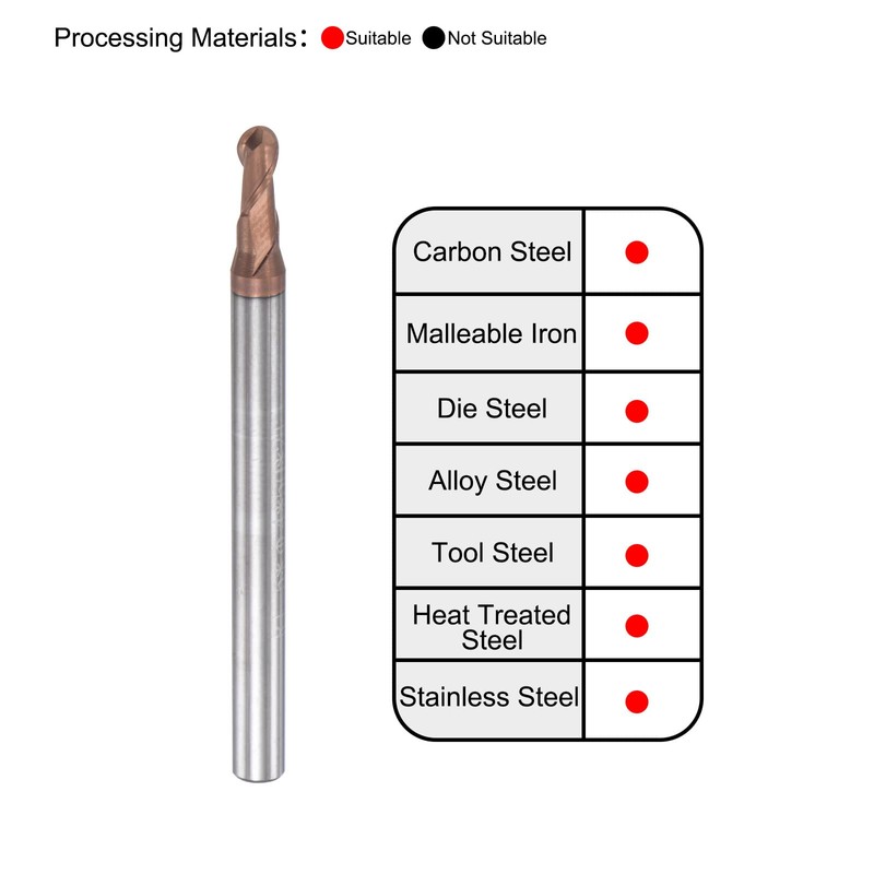- Wide Applications: Suitable for milling and cutting of carbon steel, malleable cast iron, alloy steel, stainless steel, die steel, tool steel, heat treated steel etc. For slot and hole machining. Use on CNC machining centers, engraving machines and other high-speed CNC machine tools.