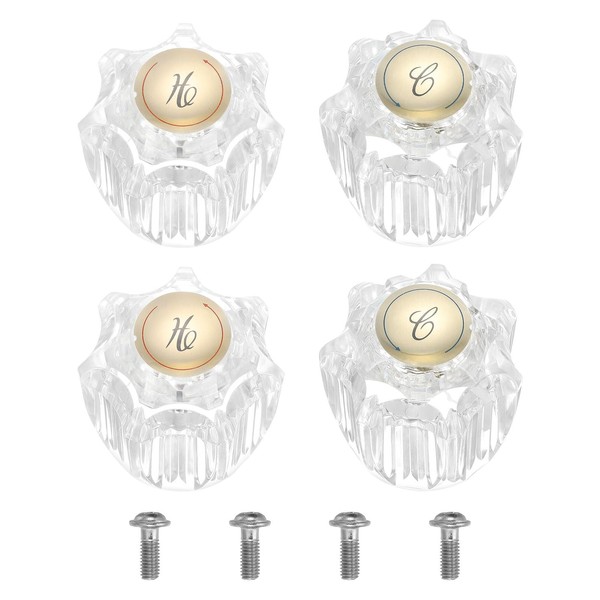 sourcing map Bathroom Faucet Knobs Replacement, 4Pcs Acrylic Hot and Cold Knob Handle Kit Fits Kitchen and Lavatory Hot and Cold Faucet (Clear)