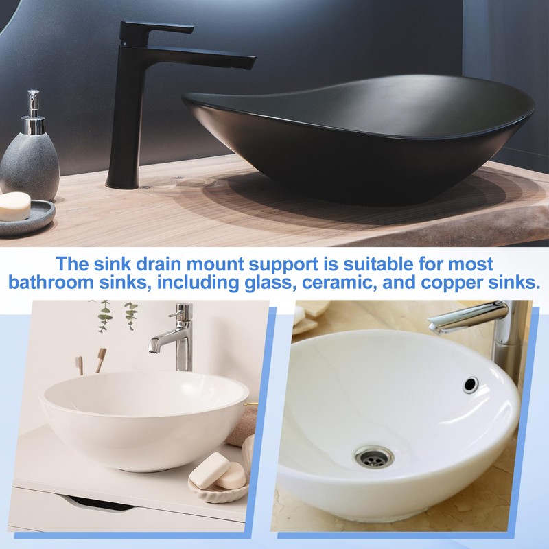 • [Wide Application]: The sink drain mount support is suitable for most bathroom sinks, including glass, ceramic, and copper sinks, and is an important accessory for countertop basin installation in homes, hotels, and lounges.