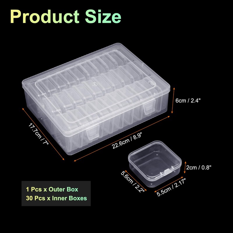 sourcing map Bead Organizer Box Small Bead Organizers 1pcs Rectangular Plastic Storage Case 30pcs Mini Clear Bead Storage Containers Boxes with Hinged Lid for Jewelry Beading Crafts