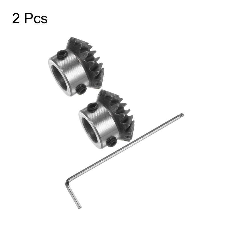 • Feature - The bevel gear set contains 2 x bevel gears, 4 x M5 screws, 1 x hex key for easy and practical use. Lower contact rate between gears, higher load capacity.