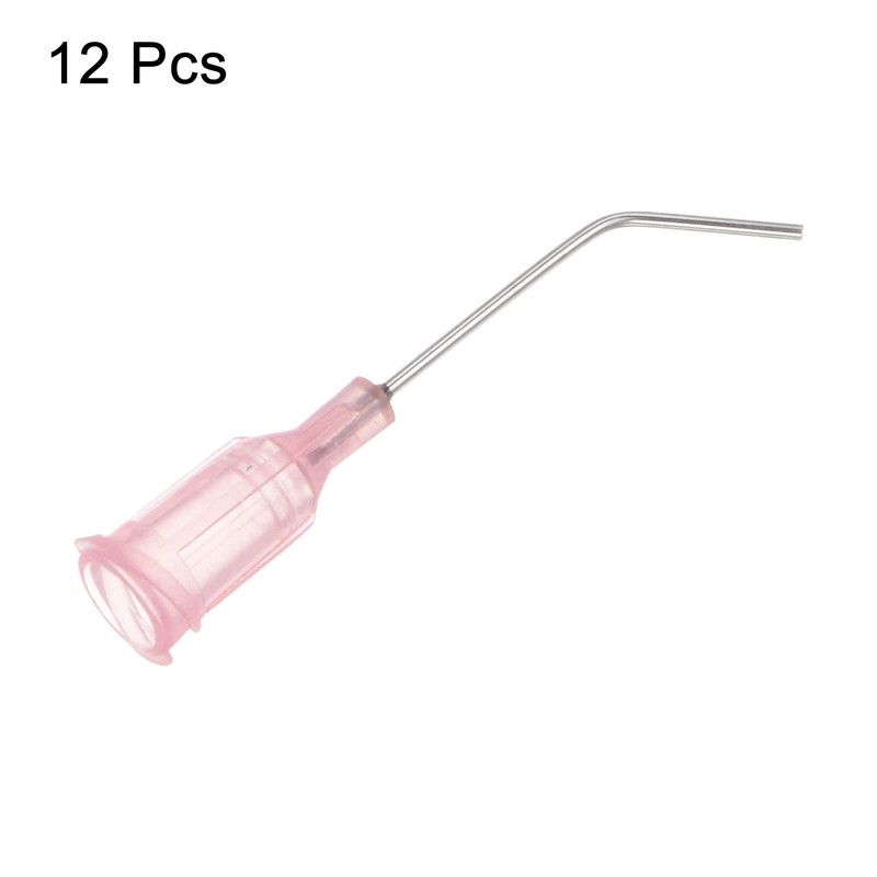 sourcing map Blunt Pointed Dosing Needles 20 Gauge 45° Curved Dosing Tips 1 Inch End Angled Dispenser Needle with Luer Elbow Blunt Needle for Oil or Glue Applicator Pink Pack of 12