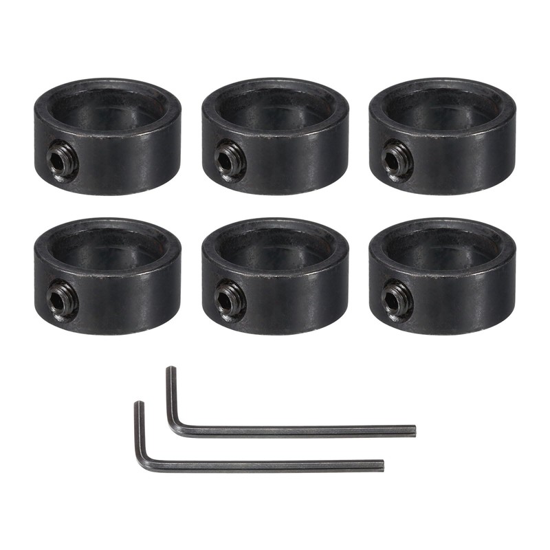 sourcing map Bore 16 mm Shaft Collar 22 mm OD 8 mm Thickness Carbon Steel Landing Gear Stopper Wheel Collar with Set Screw & 2 Hex Hex Wrench for Machine Tools Industry (Black, Pack of 6)