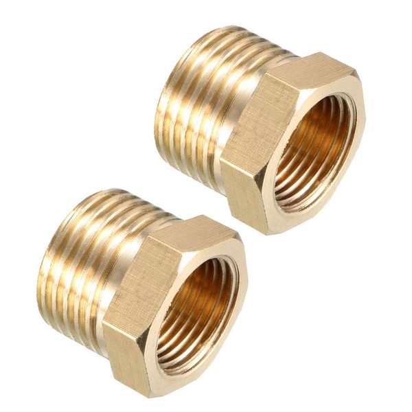 sourcing map Brass Threaded Pipe Fitting G1/2 Male x G3/8 Female Hex Bushing Adapter 2pcs