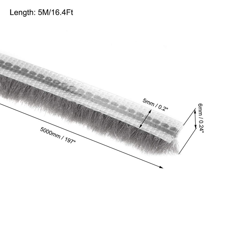 sourcing map Brush Weather Stripping, Card-Slot Seal Strip Pile Silicon Weatherstrip Door Sweep Brush for Door Window, 5M/16.4Ft Length, 5x6mm/WxH