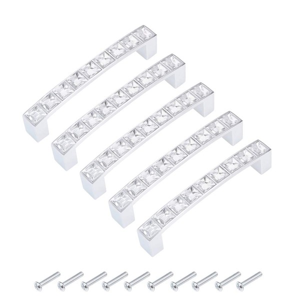 sourcing map Cabinet Pulls Drawer Handles 96mm Hole Centers Alloy Acrylic with Screws 5Pcs