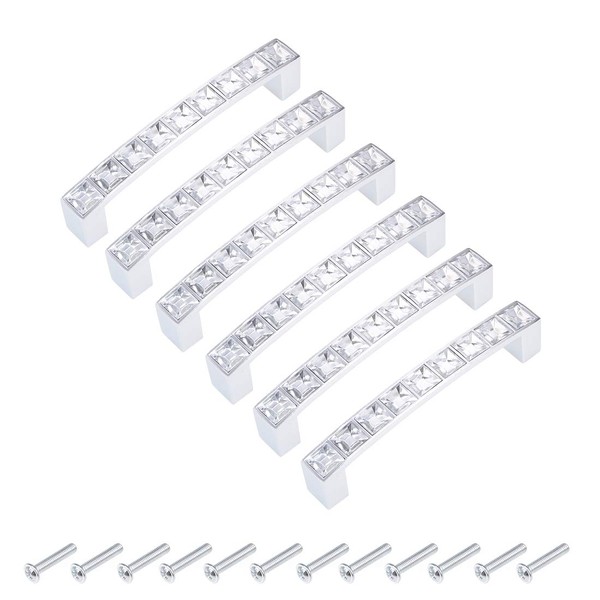 sourcing map Cabinet Pulls Drawer Handles 96mm Hole Centers Alloy Crystal with Screws 6Pcs