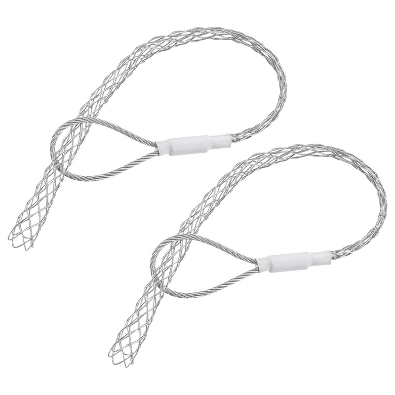 sourcing map Cable Pulling Grip for 15-20mm Cable(White) 39cm,1.28FT Wire Mesh Puller Socks Grip Single Head Galvanizing Steel Wire Grips Net Cover Smooth,2 Pcs