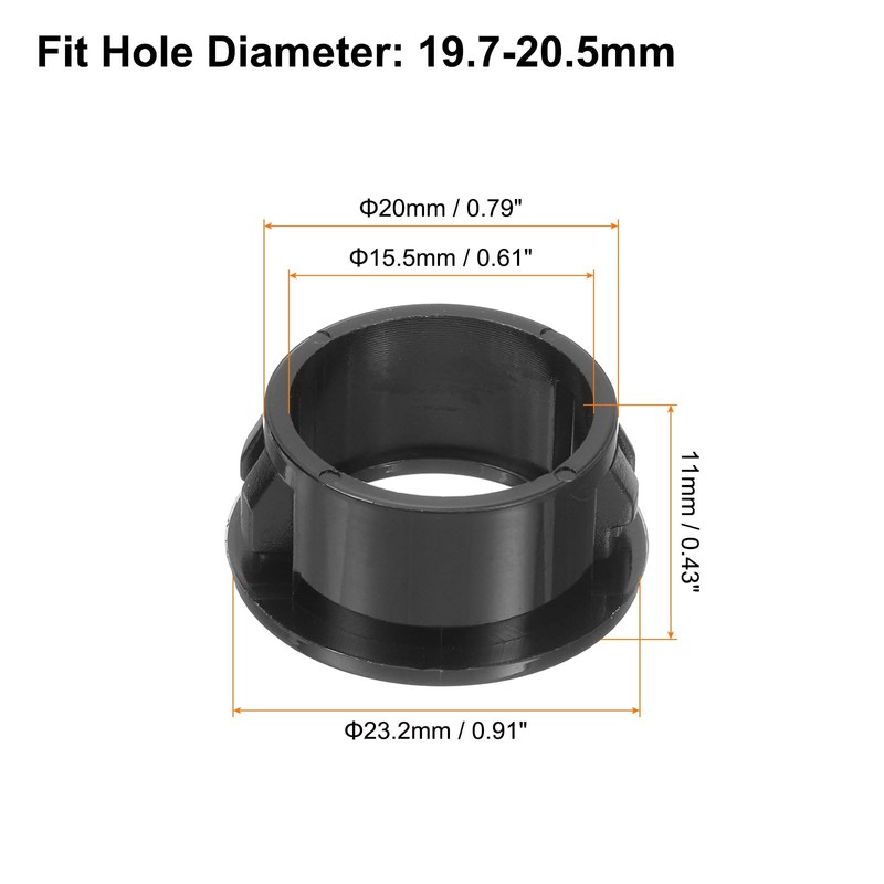 • [Plastic Grommets] The shutter's inner dia is 15.5mm/0.61inch, the mount dia is 20mm/0.79inch, the total height is 11mm/0.43inch, and the fit hole diameter is 19.7-20.5mm/0.78-0.81inch, and the plastic grommets cap dia is 23.2mm/0.91inch. There are 36 desk grommets in the package, which is sufficient to meet daily needs. Please select the correct size of snap bushing.