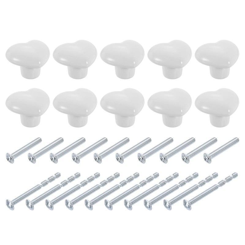 sourcing map Ceramic Cabinet Knobs, 10 Pcs White Heart Shaped Drawer Knobs, 36mm/1.42" Dresser Knob Pulls Handle with Screws for Vanity, Bedroom Furniture, Closet, Cupboard