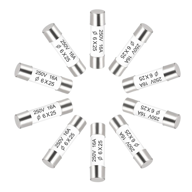 sourcing map Ceramic Cartridge Fuses 16A 250V 6x25mm Ceramic Fuses Fast Blow Replacement for Amplifier Energy Saving Lamp Ballast 10pcs