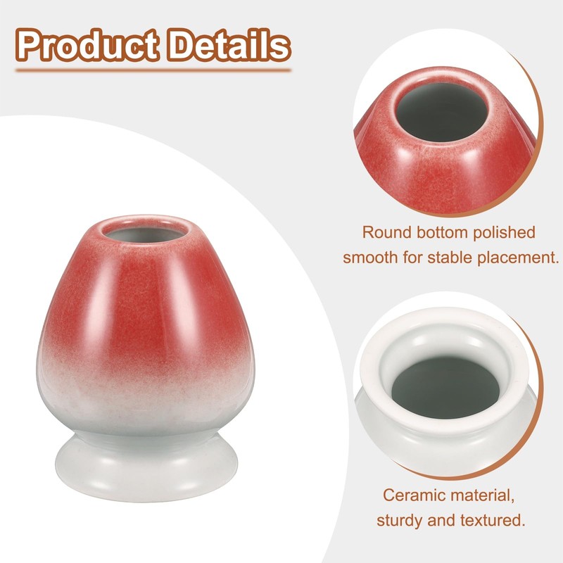 sourcing map Ceramic Chasen Stand 70mm Matcha Whisk Holder Teas Set Whisks Stand Traditional Matcha Chasen Holder Tea Set Accessories, Gray Red