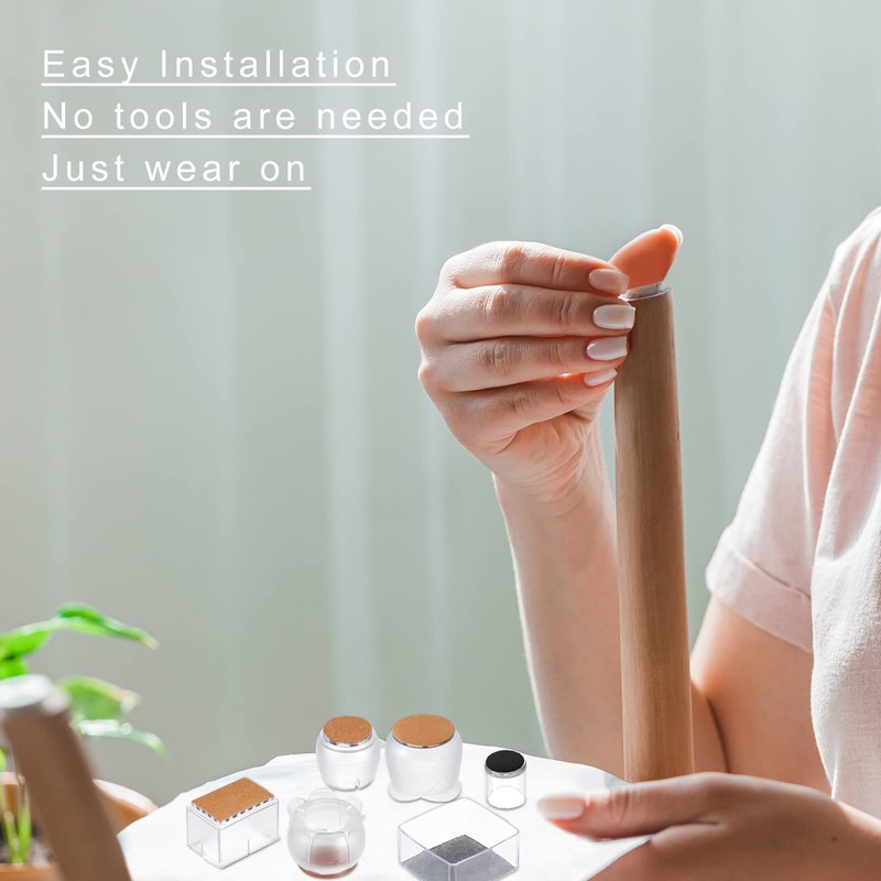 - [Easy to Install] - Chair leg protectors are easy to install, and no tools are needed just like wearing socks for furniture feet. Just slip them over your chair legs, and they all fit snugly to stay in place.