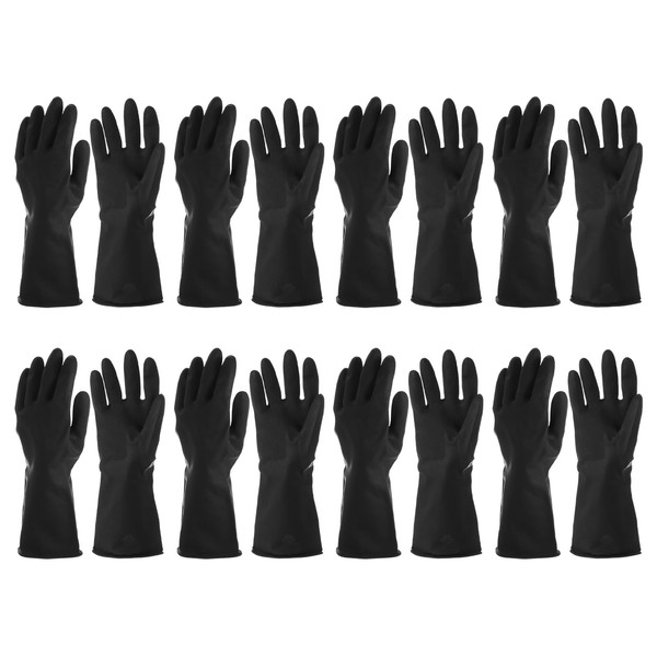 sourcing map Chemical Resistant Gloves, Latex Industrial Gloves Anti-Slip Protective Safety Work Glove for Cleaning Dish Washing Resist Acid Alkali, X-Large, Black, Pair of 8