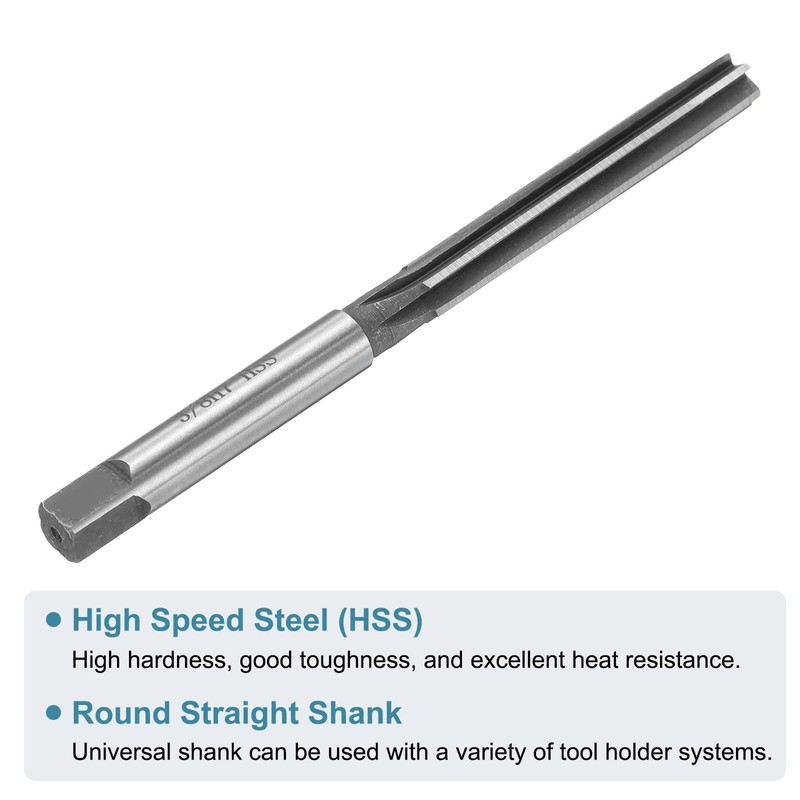 - Chucking Reamer Size: Cutting diameter: 3/8"; Flute length: 64mm / 2.52"; Total length: 128mm / 1.1". High speedsteel (HSS) reamers are durable, hard, tough, wear-resistant, high temperature resistant, and can stay sharp for a long time.