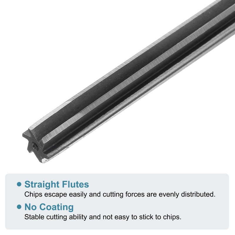 - Features: Straight groove reamer allows chips and debris to escape easily from the hole, which is very suitable for most shallow cutting applications. Can achieve the roundness, straightness and concentricity required for the hole. Straight shank can be used with a variety of tool holder systems and fixed in the tool holder to prevent the reamer from slipping in high torque applications