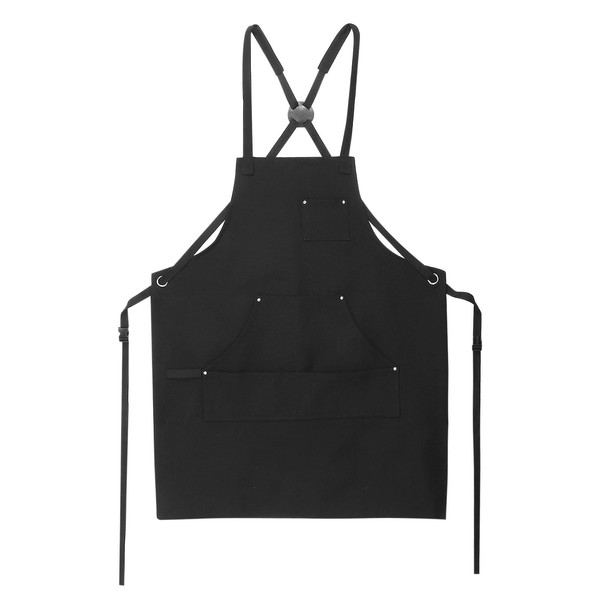 sourcing map Cooking Chef Apron 27"x34" Canvas Cotton Adjustable Cross Back Kitchen Work Aprons for Men Women Kitchen BBQ Grill Chef, Black