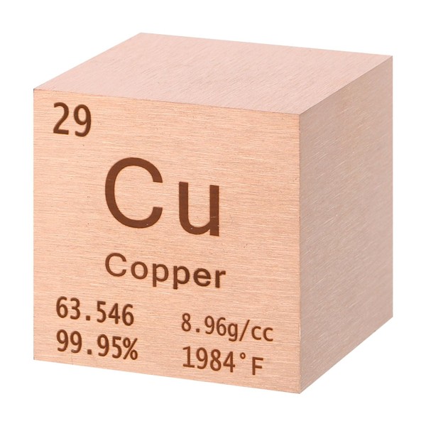- [What You Get] - Package content comes with 1 piece of 1.5 Inch high-density Copper Cube. The following important details: Chemical Name(Material): Copper; Element Symbol: Cu; Atomic Number: 29; Size: 38.1 x 38.1 x 38.1mm/1.5 x 1.5 x 1.5inch(L*W*H).