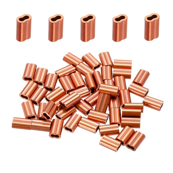sourcing map Copper Duplex Oval Crimping Sleeve 1/16"(1.5mm) Cable Ferrule Crimping Loop Sleeve for Wire Rope Cable Fishing Line, Pack of 50