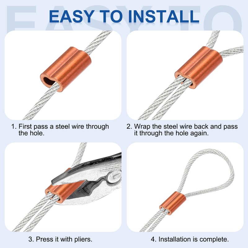- Crimping Loop Sleeves are very easy to use, you need to crimp the sleeve to the wire rope and lock the crimping ring with pliers or compression tools to get a firm and reliable connection to prevent slipping or separation.