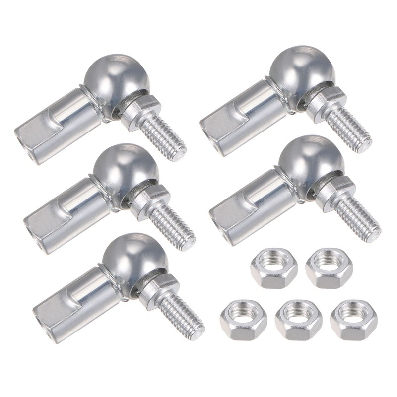 sourcing map CS10 Angle Ball Joint, M6x1.0 Right-Hand Thread, Self-lubricating Carbon Steel Ball Socket End Fitting, 5pcs