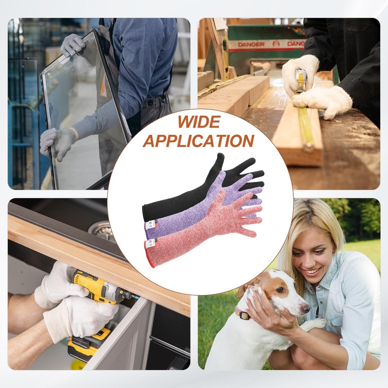 The A5 cut-resistant sleeves protect your arms from scratches and cuts during daily activities, suitable for safeguarding your arms when handling glass, metal sheets, machining, mining, welding, woodworking, food cutting, maintenance, assembly, and other tasks.