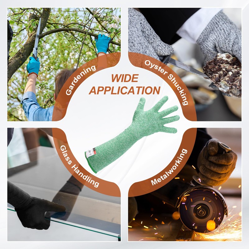 The A5 cut-resistant sleeves protect your arms from scratches and cuts during daily activities, suitable for safeguarding your arms when handling glass, metal sheets, machining, mining, welding, woodworking, food cutting, maintenance, assembly, and other tasks.