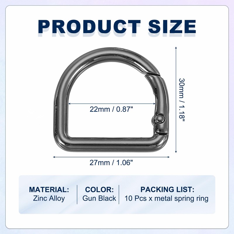 - Size Type: Small; Outer Size: 27 x 30mm / 1.06 x 1.18(L*W); Inner Size: 22mm / 0.87 inch; Material: Zinc Alloy; Color: Gun Black; In the package of: 10 Pcs x Metal Spring Ring
