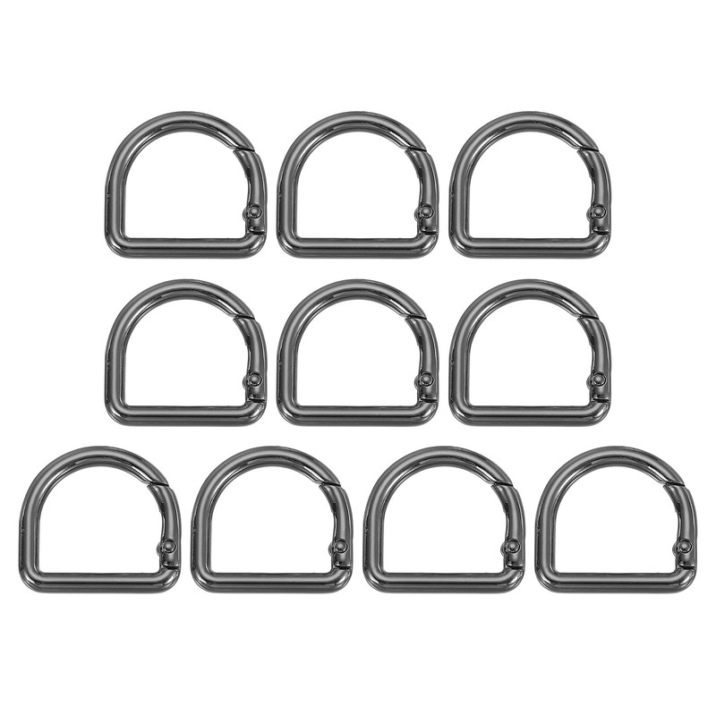 sourcing map D Shaped Spring Snap Keychain Clip, 27mm Metal Trigger Keychain Hook Clip Key Hook Buckle for Purses Wallet Belts Hardware Bags, Gun Black Pack of 10