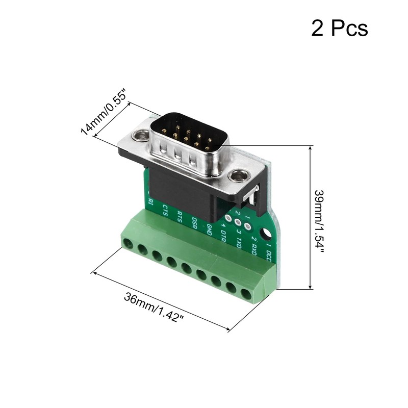 sourcing map DB9 Breakout Connector/RS232 Serial 9 Pin Connector Male Socket 9-pin 2-Row Male Solderless Serial Port Terminal Breakout for Mechanical Equipment CNC Computers 2 Pack
