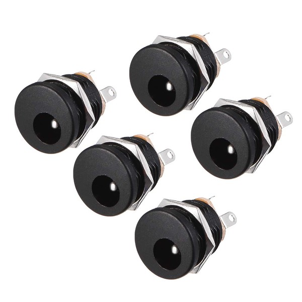 sourcing map DC-022 5.5mmx2.1mm DC Power Jack Socket 3 Pin Female Panel Mount Connector 5pcs