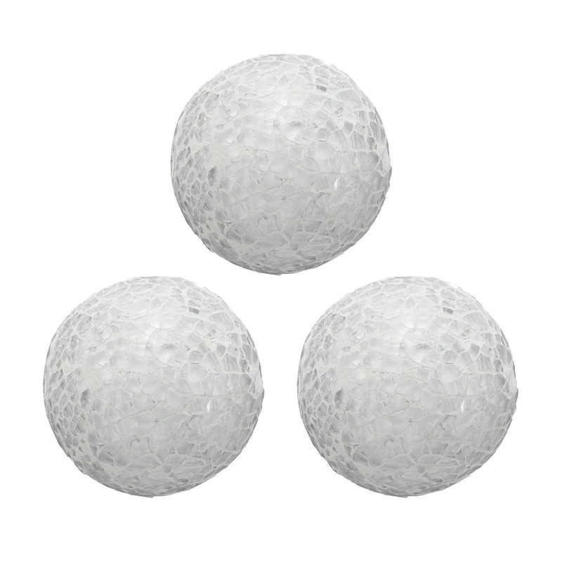 Sourcing Map Decorative Glass Balls - 3 Pcs, 2.36 Inch Orbs, Centerpiece Balls, Mosaic Glass Spheres for Decor, Bowls, Vases, Dining Table, Party, White