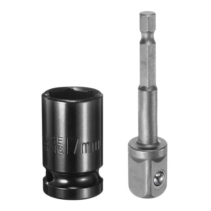 - Size - 6-Point Socket: metric socket size: 17mm, square drive: 1/2", total length: 38mm / 1.5"; Socket Adapter: hex shank: 1/4"; square drive: 1/2"; total length: 73mm / 2.87".