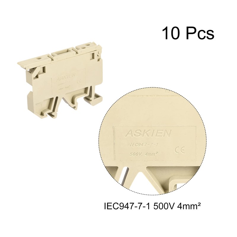 DIN Rail Terminal Block, is in size of : Model: ASK1/EN; Size: 58mm x 42mm x 8mm/2.28 inch x 1.65 inch x 0.31 inch(L*W*H); Color: Yellow