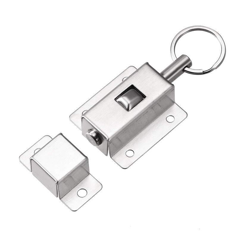 sourcing map Door Barrel Bolt, Stainless Steel 304 Ring-Pull Spring Loaded Auto Sliding Lock, 2 Pcs